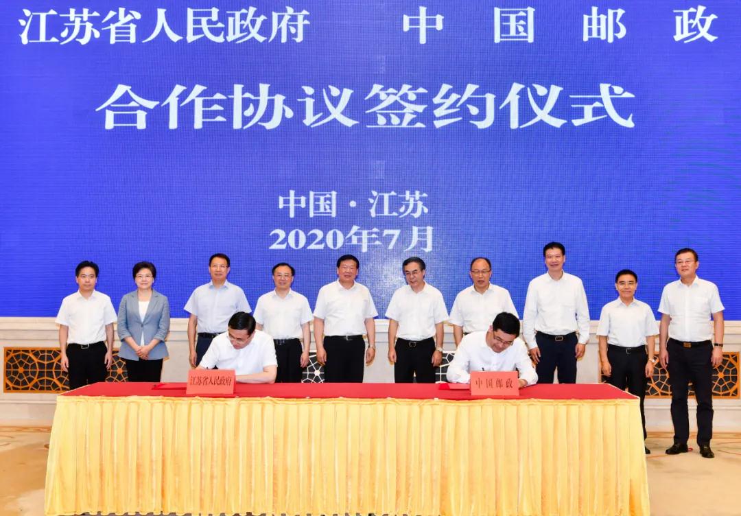 7月30日,中國郵政集團有限公司與江蘇省人民政府在南京簽署戰(zhàn)略合作協(xié)議。江蘇省委書記婁勤儉、省長吳政隆會見中國郵政集團有限公司黨組書記、董事長劉愛力,黨組副書記、總經(jīng)理張金良一行,并共同出席簽約儀式。江蘇省委常委、省委秘書長郭元強,副省長費高云,南京市市長韓立明,省政府秘書長陳建剛,集團公司副總經(jīng)理康寧參加有關活動。