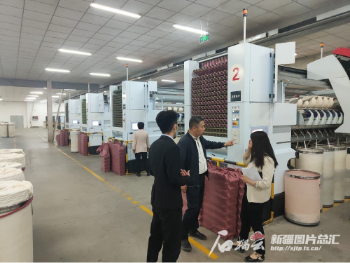 1月19日,郵儲(chǔ)銀行吐魯番市分行客戶經(jīng)理在吐魯番常新紡織有限公司了解企業(yè)生產(chǎn)經(jīng)營(yíng)情況。通訊員周敏 攝